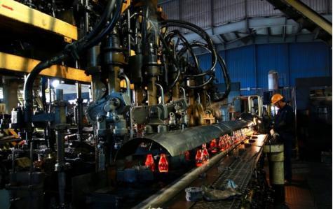 b.機械成型。由于人工成型勞動強度大、溫度高、條件差,所以,除自由成型外,大部分人工成型方式已被機械成型所取代。機械成型除了壓制、吹制、拉制外,還有(1)壓延法,用來生產(chǎn)厚的平板玻璃、刻花玻璃、夾金屬絲玻璃等。(2)澆鑄法,用來生產(chǎn)光學玻璃。(3)離心澆鑄法,用于制造大直徑的玻璃管、器皿和大容量的反應(yīng)鍋。這是將玻璃熔液注入高速旋轉(zhuǎn)的模具中,由于離心力使玻璃緊貼到模具壁上,旋轉(zhuǎn)繼續(xù)進行直到玻璃硬化為止。(4)燒結(jié)法,用于生產(chǎn)泡沫玻璃。它是在玻璃粉末中加入發(fā)泡劑,在有蓋的金屬模具中加熱,玻璃在加熱過程中形成很多閉口氣泡。這是一種很好的絕熱、隔音材料。