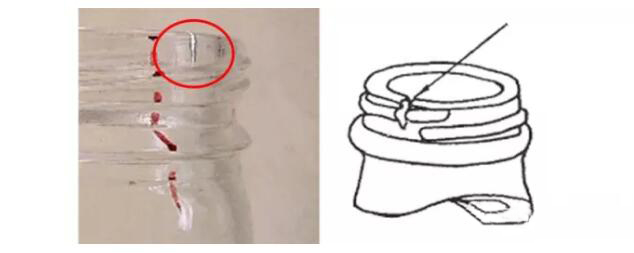 由于上述兩種原因(熱量散失快及機械力負荷)就會在瓶口面和瓶口與瓶頸連接處這兩個不同部位開裂,瓶口開裂是位于口部表面的垂直的、水平的或傾斜的裂紋。