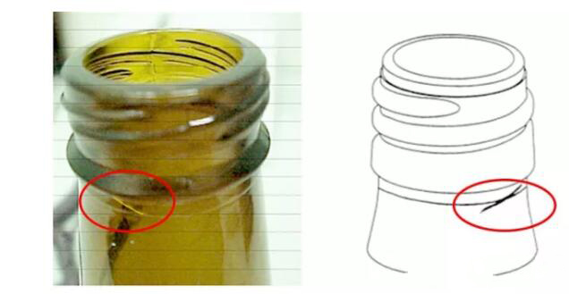 玻璃瓶各部位的裂紋都屬于主要缺陷,在在產品灌裝中可能使裂紋破裂,引起滲漏而造成產品變質