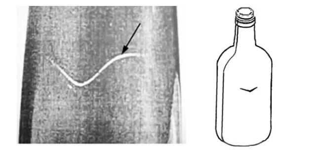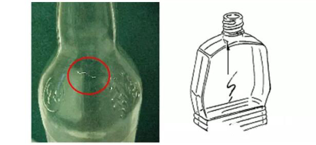② 瓶身熱裂紋:瓶身熱裂紋是瓶身上的裂紋,一般呈“V”字形。較深,且透過瓶壁。