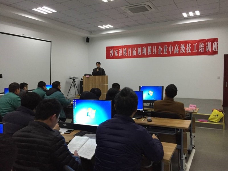 為進一步提高玻璃模具企業技術工人的技能,培養行業發展人才梯隊, 2017年,沙家浜鎮勞動保障所、人才科技辦聯合沙家浜玻璃模具特色產業創新平臺,在市人力資源和社會保障局的高度重視和精心指導下,開辦第一期玻璃模具數控車工中級工培訓班。精工模具、建華模具等重點骨干模具企業也對開班給予了大力支持,選派三十多名職工參加培訓,鎮成人教育中心校制定了行之有效的培訓計劃、確定了實用性強的培訓教材、安排了有豐富教育經驗的老師授課。