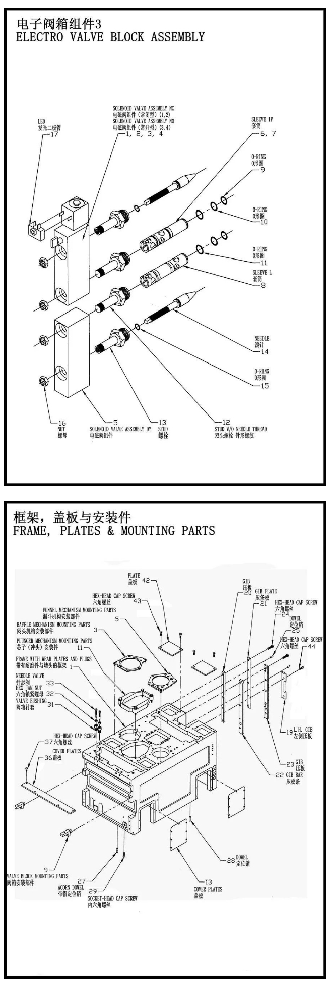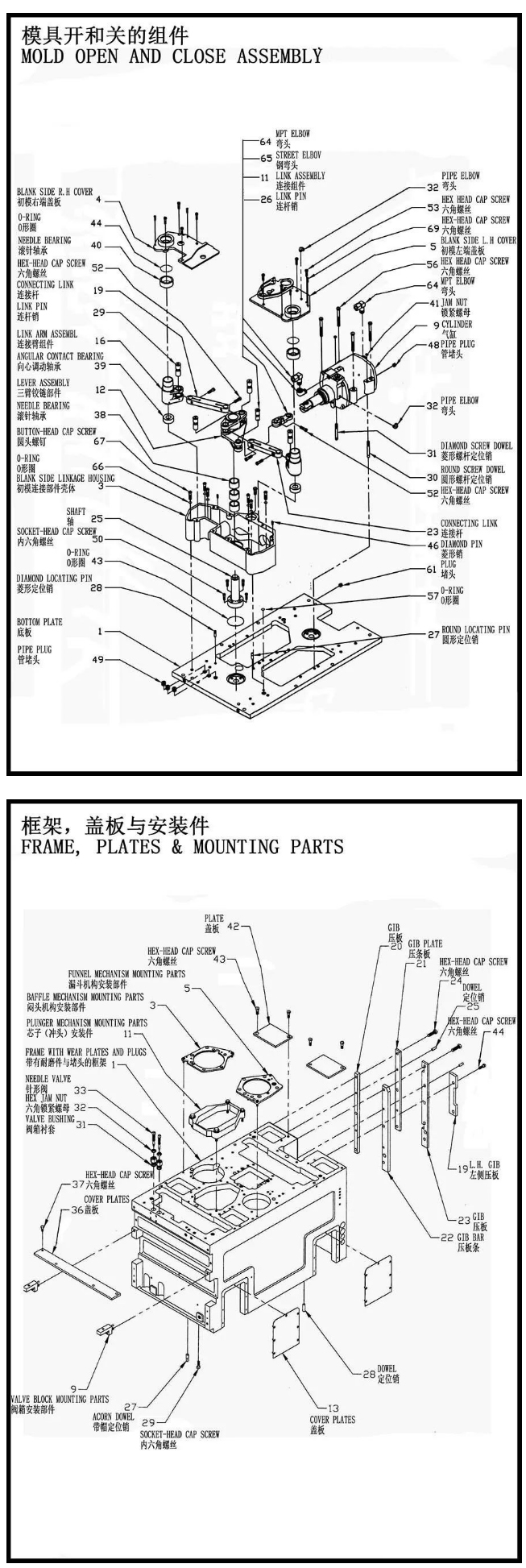 1.安裝手冊(InstallationManual)它介紹機器的重量、尺寸、用氣的壓力與容量、用氣的接管尺寸,制瓶機平臺的開孔尺寸、用電的規格與功率、控制電纜的走向、冷卻風的壓力與容量、冷卻風的接管尺寸(包括上進風、下進風等)其重要的技術參數均要讀懂理解透,否則會產生不必要的損失。