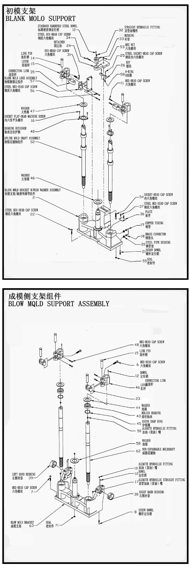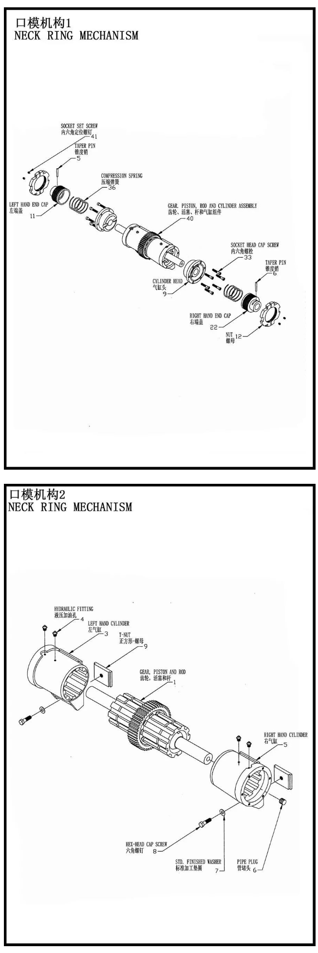 以下的中英語示意圖是我們初步的翻譯,僅想以此起到拋磚引玉的作用,期望引起玻璃瓶行業(特別是有引進設備的玻璃瓶工廠)對科技英語的重視。由于我們水平所限,不妥之處望同行們指正。