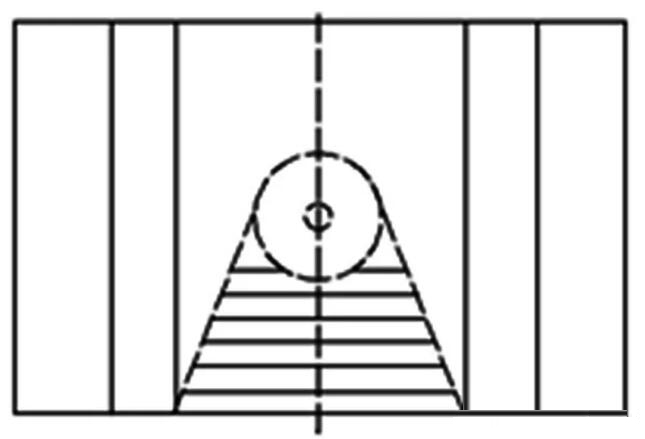 國外發(fā)明了一種供料道底部泄料裝置,它在供料道底部有一道槽溝,槽溝中央有一個(gè)泄料孔,見圖一,或在供料道底部有一道弧形裝置,弧形裝置頂端有一個(gè)泄料孔見圖二。不管是圖一還是圖二中的料槽磚,其內(nèi)側(cè)底角不要形成直角,最好是弧形斜面。這樣可以去除死角,使料道底部的臟玻璃移至放料點(diǎn)。變質(zhì)或被腐蝕物污染的玻璃流進(jìn)料盆之前,先進(jìn)入這道槽溝里從泄料孔底部排泄掉,從而有效解決因侵蝕物進(jìn)入料盆而產(chǎn)生的條紋。