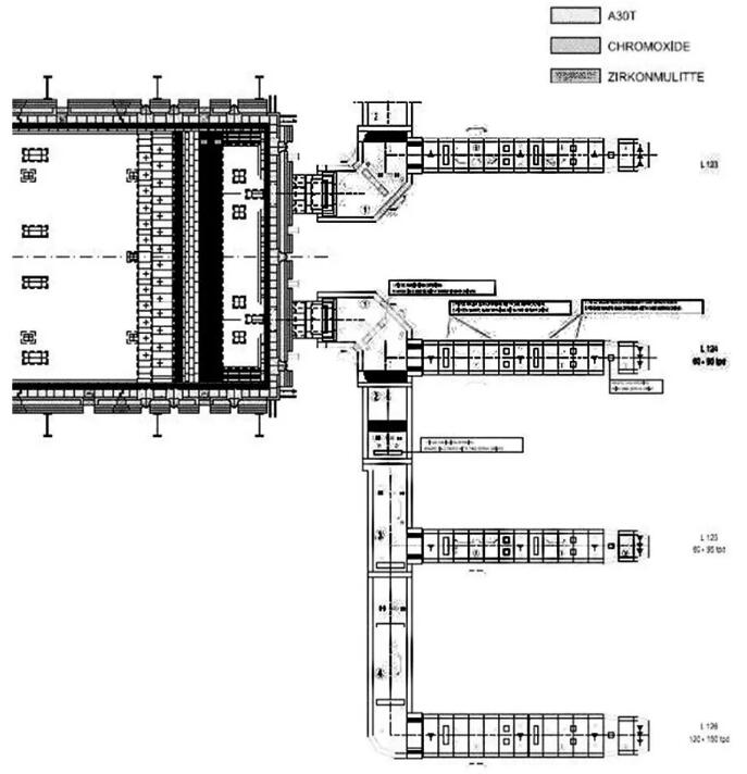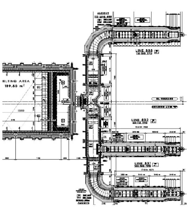 2)當今在一窯多線生產格局的現代大型窯爐格局的情形下,以一般玻璃窯爐設計概念的簡單思維來對待分配料道設計必將走入誤區。國內若干個失誤案例的經驗,足以讓我們轉變觀念。