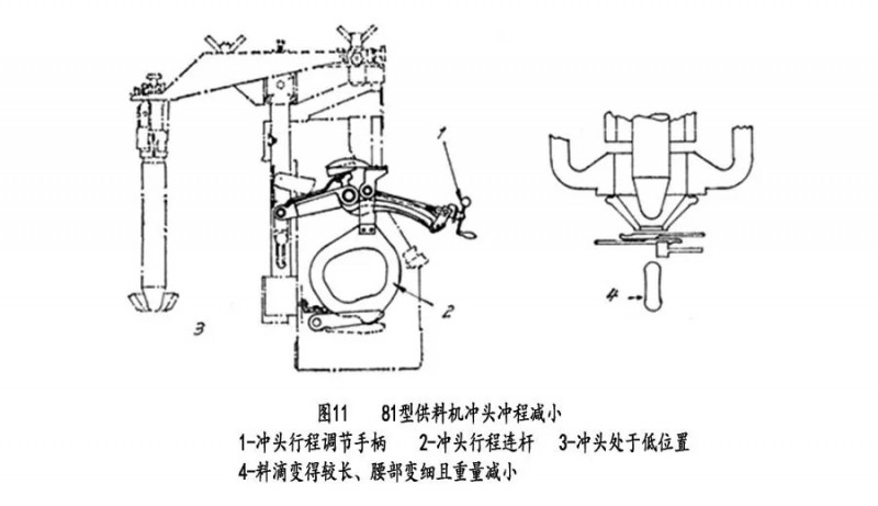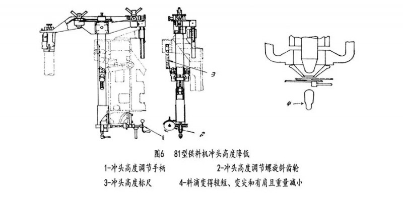 降低沖頭高度在形狀上和沖程調大大體上具有同樣的效果,但嚴格說起來不一樣,希望作料滴前端(或下端)的形狀時,上升沖頭高度、調大沖程和降低沖頭高度、調小沖程當然是不一樣的。