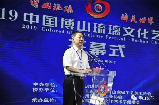 開幕式上,孟令彥、鄭舞虹、畢榮青、王樹槐、王濟眾、劉忠遠共同啟動2019中國博山琉璃文化藝術節。中國日用玻璃協會向中國玻璃藝術大師孫奉柱授予“中國琉璃葫蘆孫”榮譽稱號;發布了2019中國博山琉璃文化藝術節標志作品——世界最大的琉璃石榴;介紹了故宮與博山琉璃合作情況;發布了國家文化出口基地成果;淄博美陶瓷器有限公司與中科建集團山家文旅(淄博)有限公司簽約;淄博愛美琉璃制造有限公司、淄博康乾琉璃藝術品制造有限公司與香港藝思公司聯合成立淄博博思琉璃制品有限公司(琉璃研發設計中心)揭牌;授權博山區有代表性的琉璃企業使用“博山琉璃”地理標志。