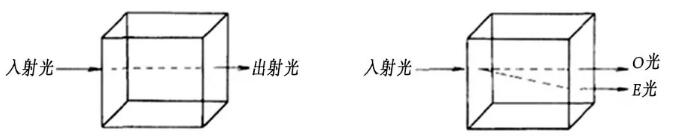 玻璃是透明材料,而且是一種均質體,它具有各向同性的性質,當單色光通過玻璃時,光速與其傳播方向和光波的偏振面無關,不會發生雙折射現象。