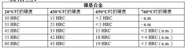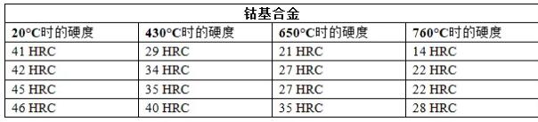 如上所示,雖然在室溫時鈷基合金的硬度要低于鎳基合金,但在高溫時,鈷基合金的硬度大 大強于鎳基合金。