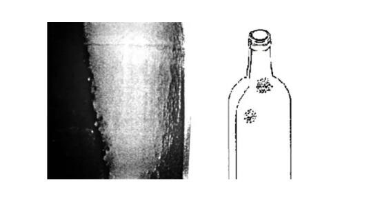 這種缺陷玻璃瓶罐成型也叫橘子皮,是瓶身表面出現(xiàn)成片的麻點(diǎn),呈現(xiàn)磨砂面。要檢查成型模是否太臟成型模是否太冷。可能是模具涂料使用過(guò)多;或模具涂料太濃(模具涂料存放不當(dāng)產(chǎn)生分層),或模具涂料牌號(hào)不對(duì);或模具涂料刷臟,或形狀不對(duì)。