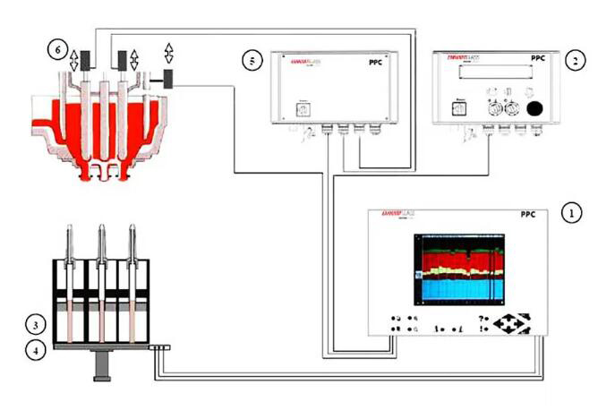 采用在沖壓機構安裝傳感器這種方式的主要是行列機制造商,比如Emhart公司、Bottero公司及HEYE公司等。雖然各家公司的技術細節有差異,其名稱也不盡相同,比如Emhart公司稱之為Plunger Process Control(簡稱PPC),Bottero公司稱之為Dynamic Forming System(簡稱DFS),HEYE公司稱之為Heye Process Control(簡稱HPC),但工作原理都基本一致。下面就Emhart公司的PPC系統為例進行簡要說明。