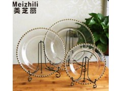 創意金邊銀邊圓形玻璃盤 電鍍金色圓珠玻璃盤 西餐墊盤水果盤