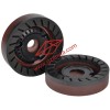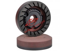 常用于斜邊機上磨斜面,工作層20*10, 采用優質金剛石和樹脂結合劑制成,呈紅色,為塑膠材質,有減震的作用,工作層呈半齒狀。鋒利耐磨,切削力強,去痕效果明顯,內置法蘭分水盤,冷卻速度快,比較鋒利,可磨30mm以上斜面,價格實惠,常見粒度3.4.5.6.7號。一般常用3 4 5 6號